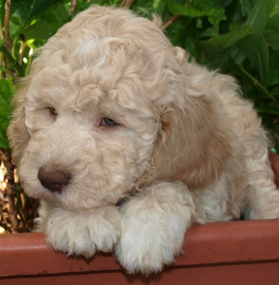 Die Zeit vergeht. Unsere Welpen sind jetzt 5 Wochen alt und schon wieder ein ganzes Stück gewachsen. Nach einer langen Regenzeit können die Kleinen jetzt endlich den Garten unsicher machen.